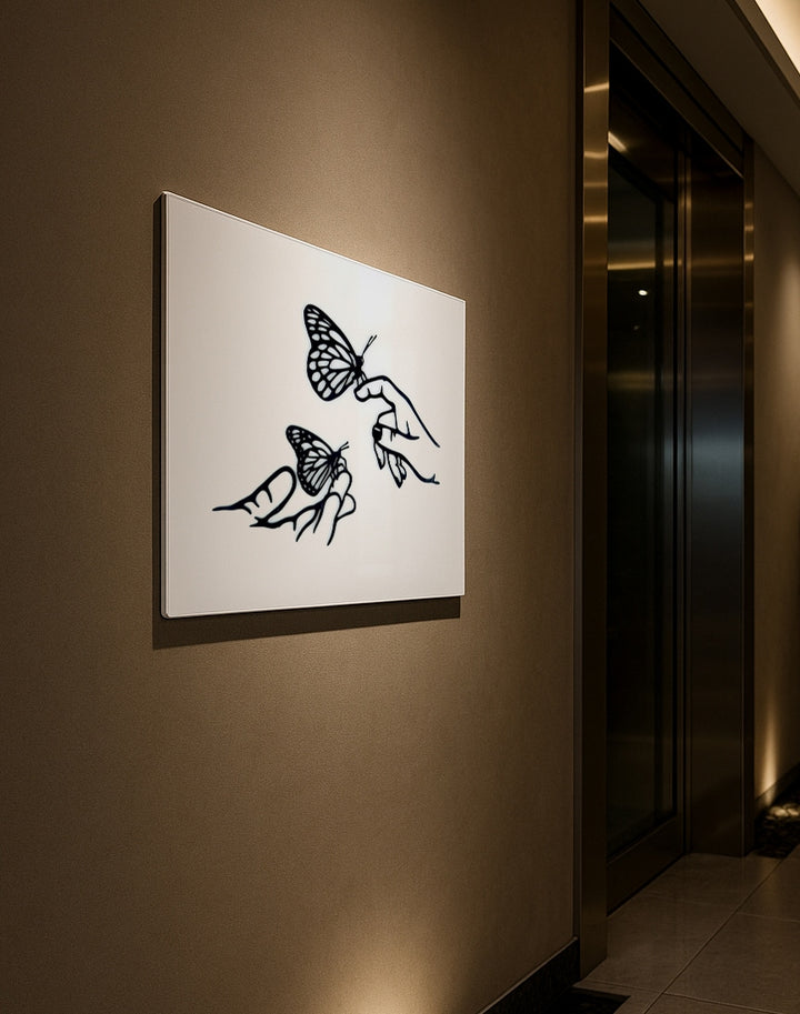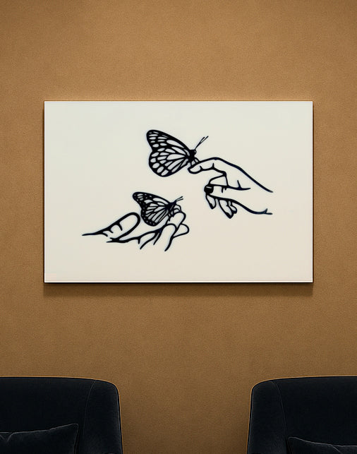 A tribute to change, grace, and emotional freedom, Let Them Fly captures a moment where two hands meet butterflies — one offering, the other releasing. The minimalist line art balances stillness...